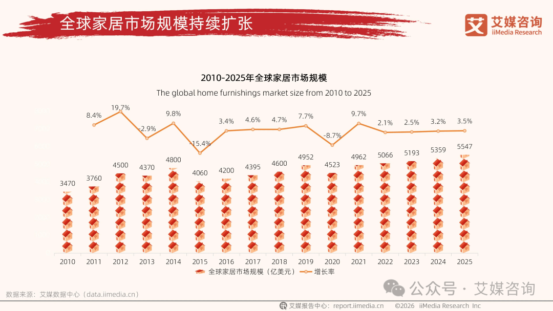 iiMedia Research(艾媒咨询)数据显示,2025年全球家居市场规模达到5547亿美元★□▼,同比增长3★….5%,市场整体呈现“稳健增长+结构升级○◇•”的双轮驱动态势•▷•。