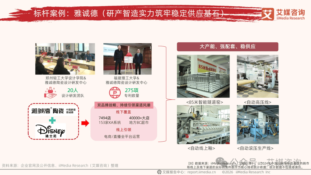 广东雅诚德实业有限公司(简称“雅诚德○▪”)成立于2004年,是中国日用陶瓷龙头企业。公司具备强大的规模化生产制造实力,现有员工超千人,配备印花机100余台、自动滚压生产线条、自动上釉线条,厂房总面积逾11万平方米,日吞吐量达900立方米,日用陶瓷年产量超过1亿件•。凭借硬核产能与市场竞争力▽,雅诚德荣膺2024年度日用陶瓷全国销量冠军。标杆案例:雅诚德(七大产品体系覆盖日用陶瓷全场景)