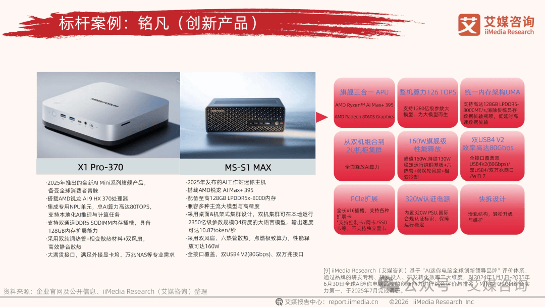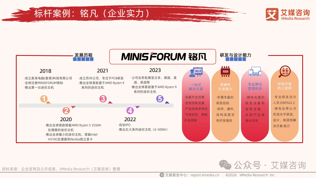 2018年,是基于x86的PC解决方案的领先力量▲,产品线涵盖迷你主机、平板电脑及主板等多个系列。其坚持以创新为引擎,通过与AMD、英特尔等主流处理器厂商的深度合作,持续迭代中高性能迷你主机•-,推动旗下主要产品性能达到行业前沿水平★▲。目前,MINISFORUM铭凡的迷你主机产品已畅销海内外(如欧美日等)40+个国家和地区•-•。除了标准消费级产品外,MINISFORUM铭凡还为家庭◆、办公、教育-、金融、商业和娱乐等多个领域提供专业的定制化解决方案◇■-,以满足不同场景下的特定算力需求••☆。标杆案例☆:铭凡(创新产品)