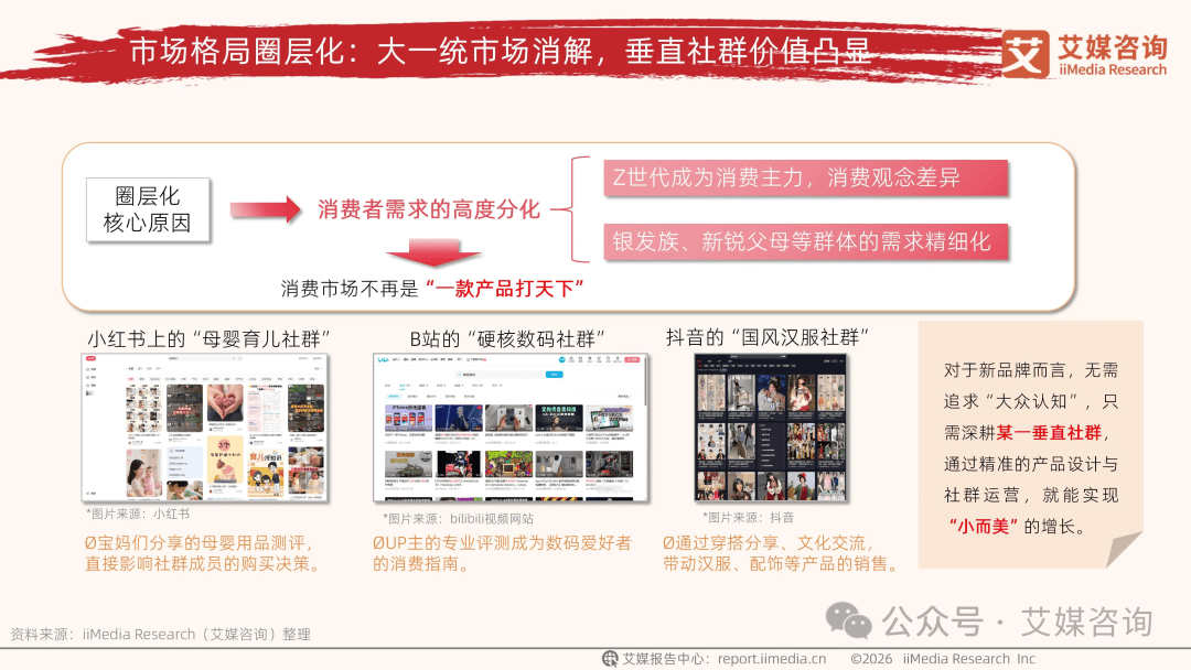 2025年,传统意义上“大一统的大众市场”加速消解△=◆,取而代之的是碎片化、圈层化的小众市场★▲,垂直社群成为新品牌崛起的核心土壤,市场格局从▽★▼“规模制胜”转向“圈层制胜”■☆。