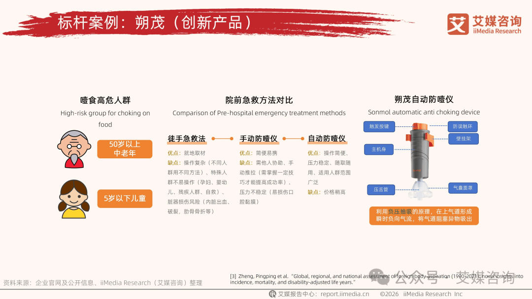 数据显示,全球范围内▪,5岁以下儿童是FBA(异物吸入)发病率最高的群体▲;50岁以上人群的发病率亦随年龄增长而逐步上升[3]◆△◇。针对此类高危群体,防噎仪可与海姆立克急救法形成有效互补△,弥补传统急救法对特殊人群的操作风险-★■,尤其适用于家庭▪☆•、养老机构○▪△、幼托场所等噎食(即气道异物梗塞FBAO)高发场景。在智慧养老产业加速发展的背景下,朔茂Sonmol防噎仪作为国内首款取得二类医疗器械认证的噎食急救设备,已于2024年成功入选《重庆市第一批智慧养老应用试点示范及产品推广目录》▽▪○。