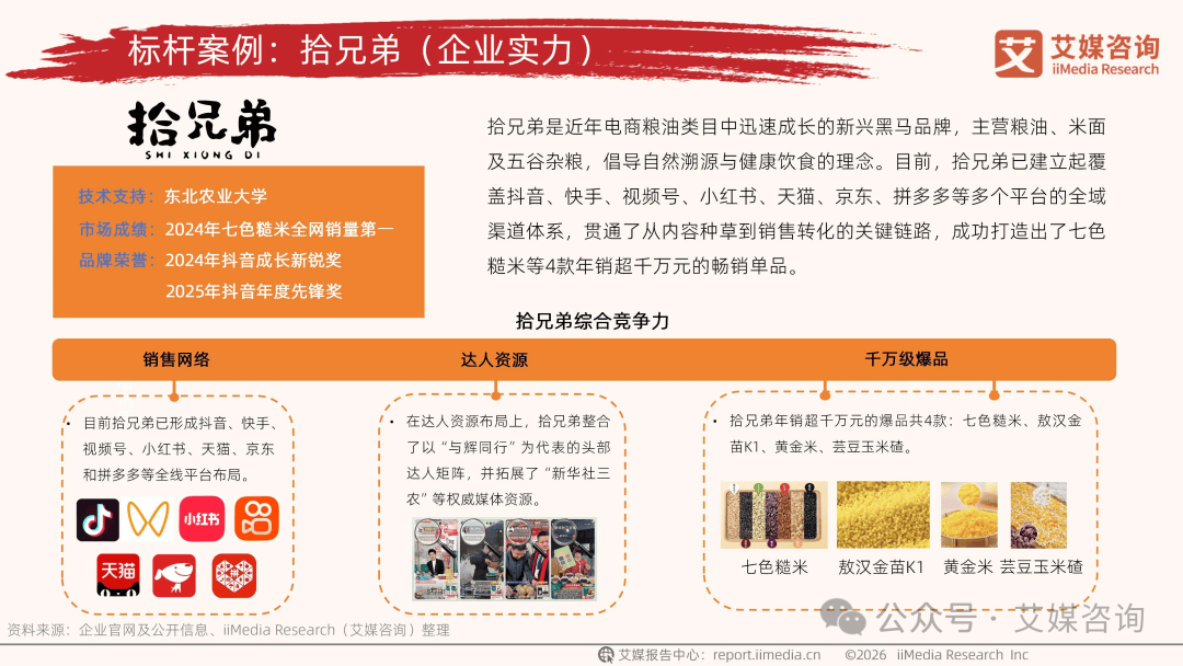 随着…“健康饮食”的概念教育日益深化,消费者逐渐将目光转向主食革新。数据显示•○◁,粗粮糙米饭类是最受消费者青睐的轻食类型◁••,其中,以七色糙米为代表的科学复配产品,正以其复合营养价值成为该品类的增长曲线。在此趋势下,拾兄弟品精准锚定该核心品类◆○,通过强化供应链与品控,并依托高效的营销网络,实现品牌声量与市场份额的协同增长,最终于2024年斩获“七色糙米全网销量第一○”的销售成绩。