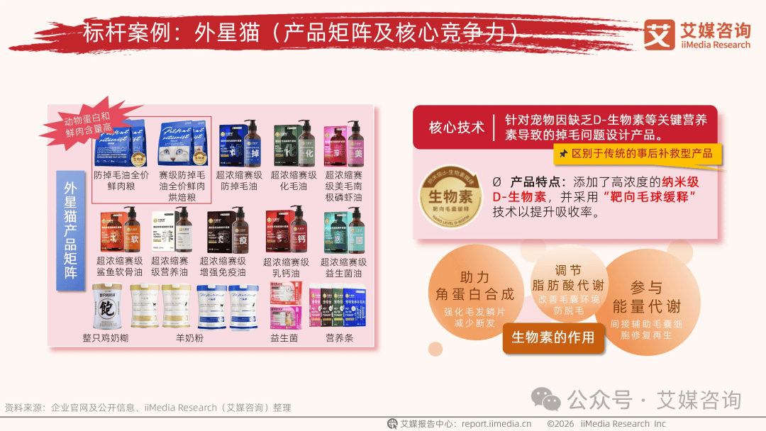 品牌将其产品定位建立在科学的认知基础上:犬猫在生命早期因母体营养支撑而较少掉毛▼○▲,后续饮食中若长期缺乏关键营养素如D-生物素,则可能导致掉毛加剧、毛发干枯、皮肤问题乃至免疫力下降▼。基于此,外星猫系列产品聚焦于通过精准营养补充,从根源改善宠物毛发健康▪。同时,品牌作为中国猫赛的战略合作伙伴,其产品为赛级犬猫提供营养支持,已在毛发密度、光泽度等专业指标上获得实际场景验证。