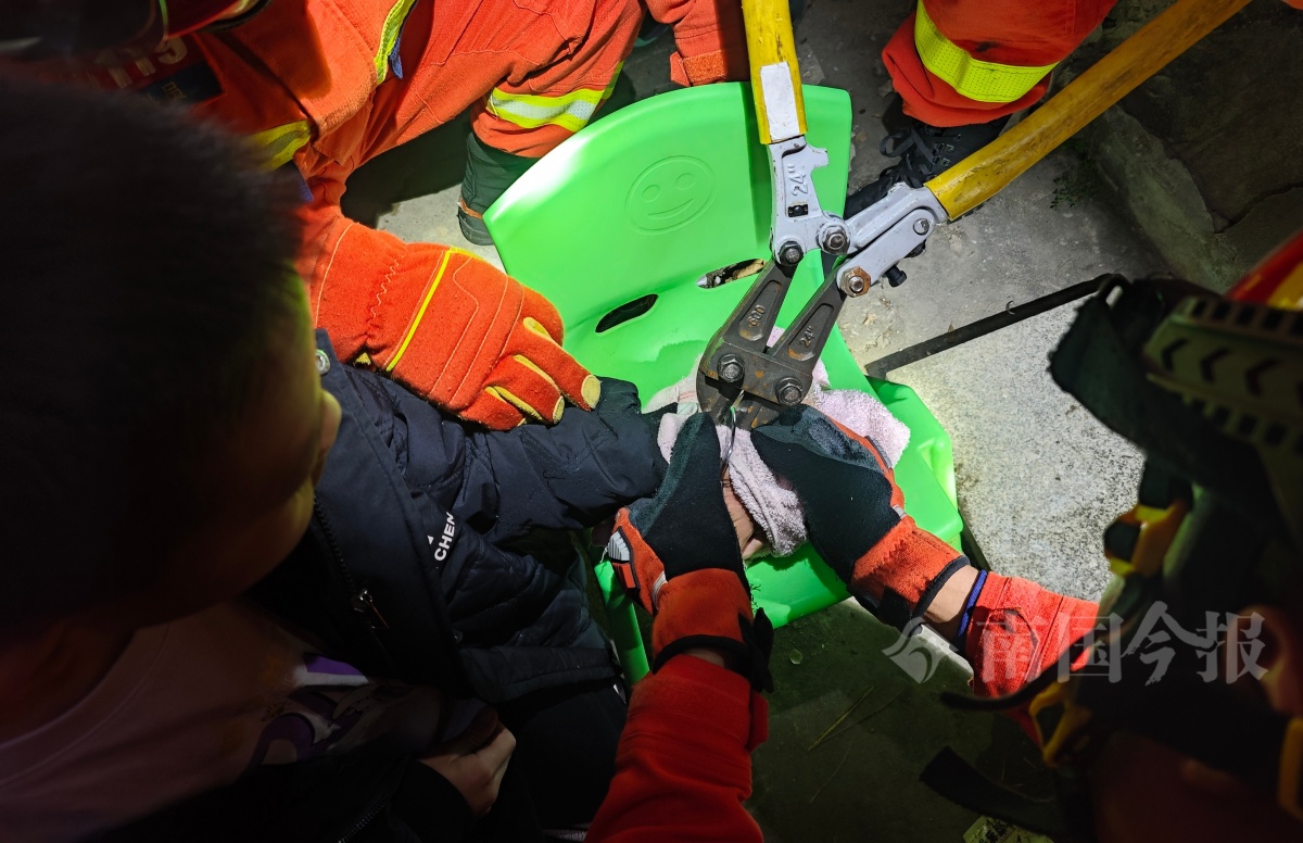 消防部门提醒,寒假来临,孩子居家时间多,好奇心强,家长要加强对孩子的安全知识教育,避免发生意外。如遇“手铐”、戒指等物件卡住手时,不要强行拉拽卡手物件,应及时使用润滑剂或寻求专业人员处置,避免因操作不当引起肢体肿胀,加大救援难度。